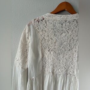 Tendenze Italian Silk and Lace Sheer Flowy Layered Blouse Cream Women Large