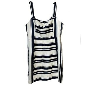 Eliza J Sleeveless Jacquard Striped Mini Tank Dress Navy Blue Size L Slit Lined