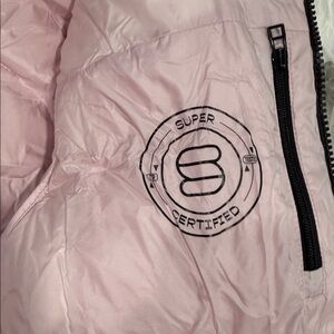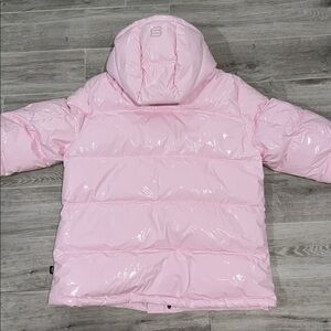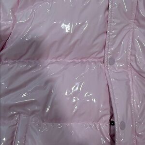 Stylish and warm puffer jacket lacquer Light pink color. Ideal for cold weather
