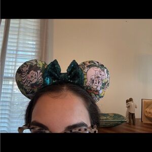 Minnie Mouse ears with a safari animal print and sequin bow.