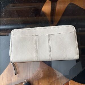 This elegant cream wallet is perfect for any occasion. Its sleek design and neutral color make it a versatile accessory.