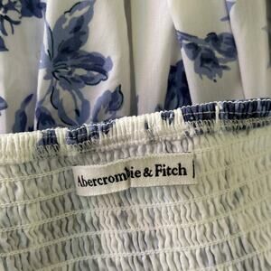 Abercrombie & Fitch Emerson Poplin Puff Sleeve Midi Dress in a blue and white floral print.