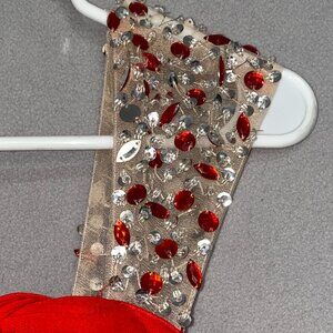 Sheer mesh straps with red & silver rhinestone embellishment