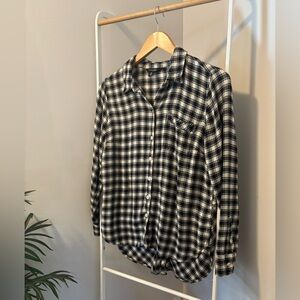 Lucky Brand Black and White Checkered Flannel Button-Down Shirt