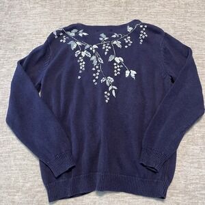 Vintage Embroidered Navy Cardigan Sweater Small Grandma Cottagecore Floral Beads