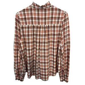 Loft Plaid Ruffle Cottagecore Button Front Blouse Size Small
