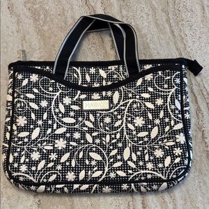 This wristlet features a large open interior with 2 card lots in matching brown fabric lining.
