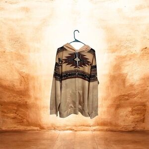 Men’s Southwestern Aztec Print Hoodie Pullover Neutral Tones Size 3XL