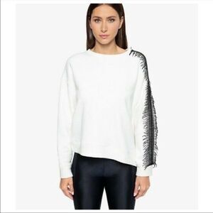 Koral Valasca Matte White Sweatshirt With Fringe Details Asymmetrical Size Small