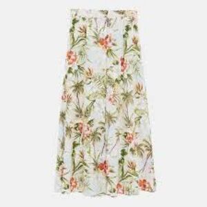 Zara Palm Tree Print Midi Skirt 100% Cotton Boho Vacation Bahamas S Small