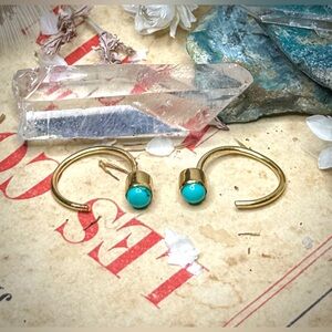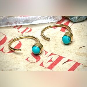 18k Gold Plated Sterling Silver Dry Creek Turquoise Huggie Hoop No Back Earrings