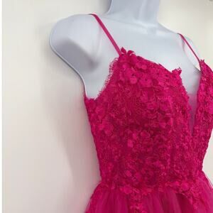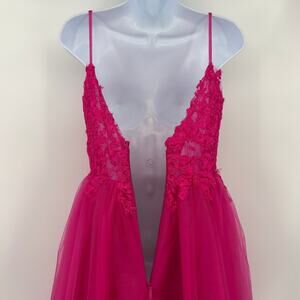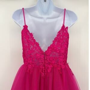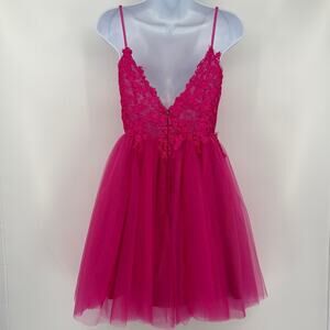 Hot Pink Stacees Lace Tulle Mini Dress Party Prom Coquette