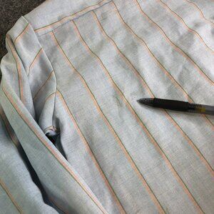 Carol Brent Vintage Work Shirt Dress 7 8 Blue Orange Button 60s 70 Made Japan