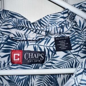 Stylish Chaps shirt with a navy palm design. Ideal for casual wear. It is a size 3XL and made out of 92% polyester 8% spandex. The shirt is in excellent like new gently used condition.