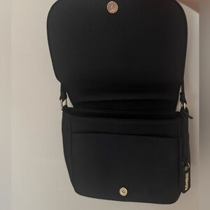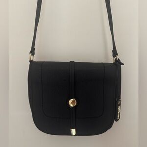 kenneth cole reaction, black crossbody bag, saddle bag purse, magnetic closure purse, gold tone hardware, everyday handbag, minimalist purse, women’s crossbody, nwot purse, essential purse