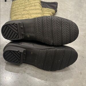 Like new & unworn - small discoloration at inside ankle area. Not noticeable when wearing but up close photo included for detail. Kept in storage and like new. Super warm, rain proof & cute with knee high style. Retail $150