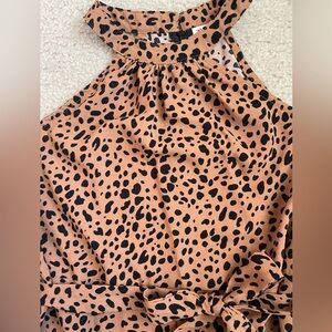 Stylish leopard print romper. Sleeveless with a halter neck. Perfect for playful days. Size 150 or 10/12