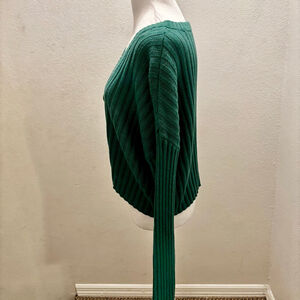 American Eagle Green Boxy Ribbed Button Up Cropped Cardigan Sweater M