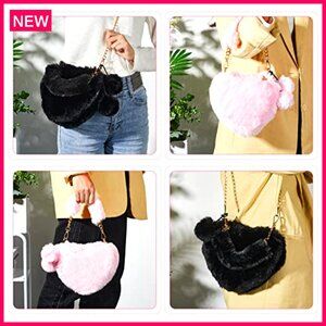 2 Piece Faux Fur Heart Purse Set with Chain Strap Shoulder Bag