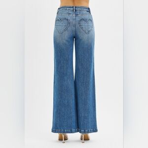 RISEN HR Medium Wash Front Yoke Heart Back Pockets Wide Leg Jeans Various NEW