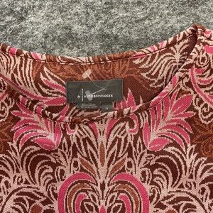 Anthropologie Women's Pink and Brown Patterned Top Size S