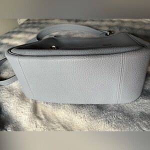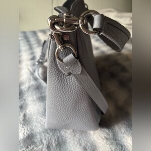 Brand new without tags. Cary Coach multi-wear bag from March 2023 era. Softest pebbled leather ever. The color is gray but almost a touch of blue-ish to it. Detachable strap with 21.50" drop for shoulder or crossbody wear