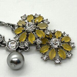 Ann Taylor Vintage Silver Necklace With Yellow Floral Accents & Crystal Details