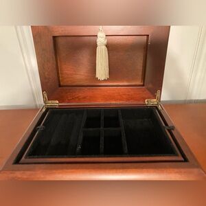 Vintage Bombay Co solid wood velvet lined jewelry box,removable tray,plays music
