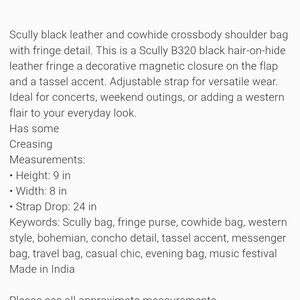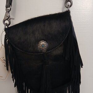 Scully hair on hide black leather fringe crossover bag purse nwt