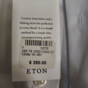 Timeless elegance with Eton's classic white shirt. Ideal for formal events. Crisp and stylish design.