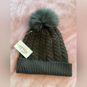 Overland 100% cashmere beanie with fox fur and raccoon fur pom in Forrest green. Nothing could be cozier than a cashmere beanie crowned in a genuine fur pom, except for our cashmere beanie.