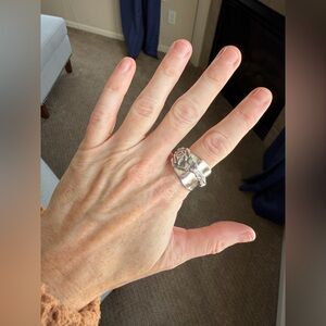 Handmade spoon ring made by me from vintage silver plated demitasse spoon! All my jewelry is made from silverware found at estate sales, since this a used spoon there are imperfections in the metal. Ring is a size 11.5