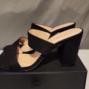 Black Block Heel Mules with Suede Straps