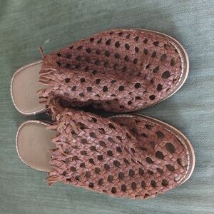 Free People Mirage Woven Leather Mules Brown