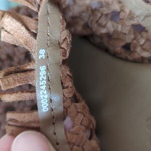 Step out in style with these chic tan woven slip-on shoes. Perfect for any casual outing, they offer both comfort and elegance.