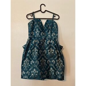 Altar'd State | Jacquard Party Dress with Statement Bow (Teal & Gold)