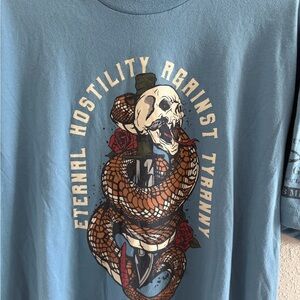 Bold design with skull and snake graphic. Comfortable short sleeves. Ideal for everyday wear.