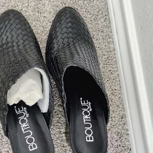 Boutique by Corkys Womens Size 7 Black Woven Slip On Heeled Mule Clogs Shoes Life Gourd NEW