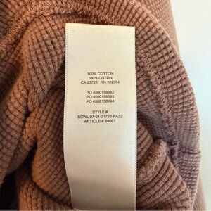 Soft brown waffle knit with long sleeves. Ideal for layering.