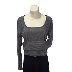 Tillys Ribbed Long Sleeve Square Neck Top Charcoal Gray XL