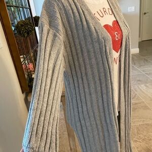 Open long cardigan. Brand new purchased from Boutique online. New in plastic bag. Medium weigh material. A perfect cover up for town errands.