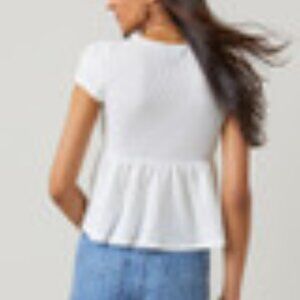 Ribbed knit top features a feminine V-neckline, short sleeves, and a comfortable stretch fabric.