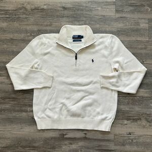 Vintage Polo Ralph Lauren 1/4 Zip 100% Cotton White Knit Sweater Size L