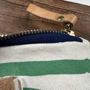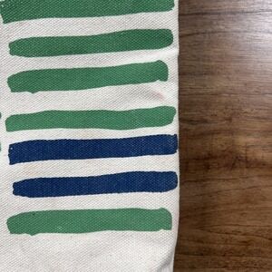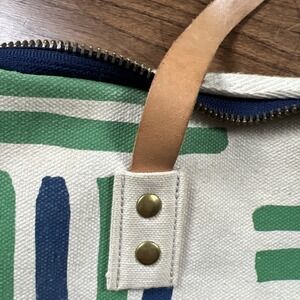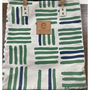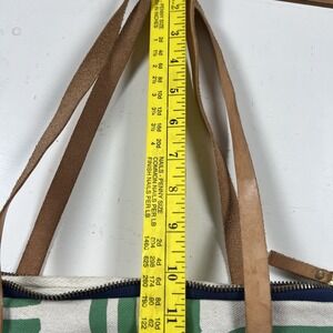 ANTHROPOLOGIE ERIN FLETT CANVAS BAG IVORY Green Blue Leather Double Strap