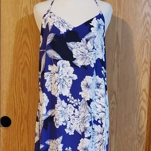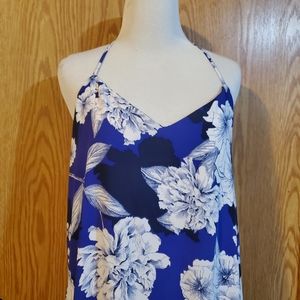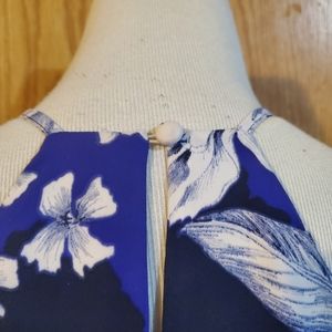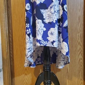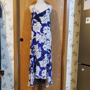 Tahari floral high low sleeveless maxi dress purplish blue polyester size S