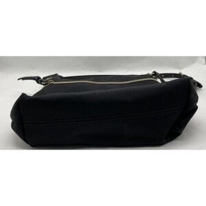 Discover effortless style with this chic Dooney Bourke bag. The durable black nylon exterior is complemented by refined leather trim and classic gold-tone hardware, offering a sophisticated look that's built to last. Its compact yet functional design makes it perfect for everyday errands, weekend outings, or stylish travel.