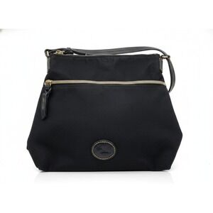 Keywords: Dooney Bourke, crossbody, nylon bag, black handbag, leather accent, everyday bag, travel accessory, designer purse, casual chic, versatile, lightweight, gold hardware