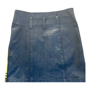 LF NWT Anne Black Wax Coated Denim Mini Skirt Size Yellow Logo 23 MSRP $268