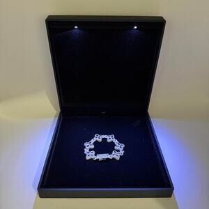 Iced out navy clover-flower bracelet with AAAAA+ stones shine.