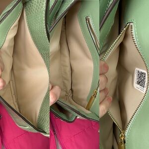 Very good condition. Light discoloration and faint impressions to the back panel only, as shown in photos. Front, strap, corners, and interior remain clean. Hardware shows light surface wear consistent with gentle use.